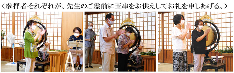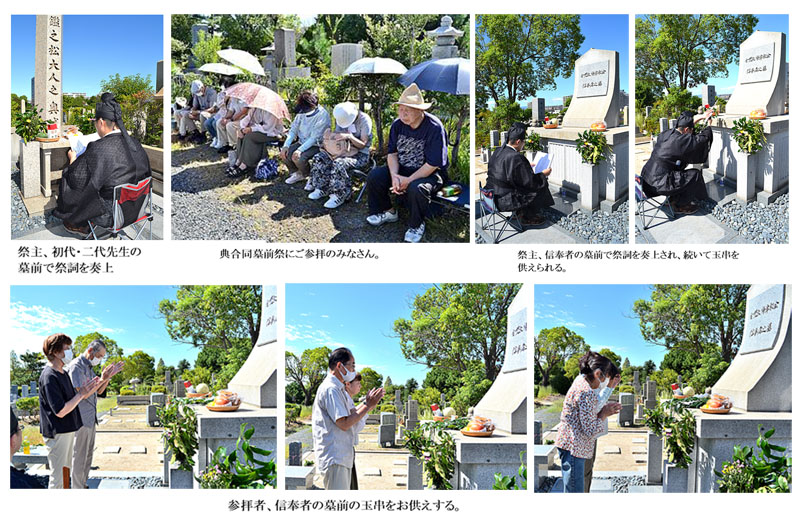 ) 「秋季霊祭」が仕えられました。秋とは申しましても、まだ残暑厳しい中、「秋季霊祭」が教会長 鈴木清隆先生ご祭主のもとに、仕えられました。 初めに神前で奏上祭が仕えられ、続いて、霊前で霊祭が仕えられました。今年もコロナ感染予防と祭典時間の短縮を図るため、御霊様のお呼び出しは前日に執り行われました。 ![]() ![]() 9月24日(日) 服部のお塚にて「秋季合同墓前祭」が仕えられました。 ![]() |